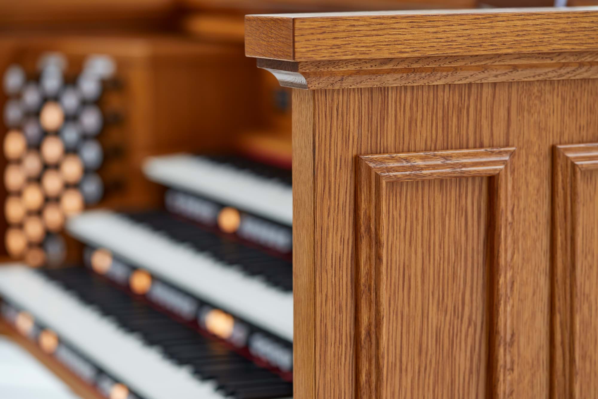 | Ausführung | Eiche hell/mittel dunkel (andere Holzfarben optional), Notenpult und Orgelbank verstellbar |