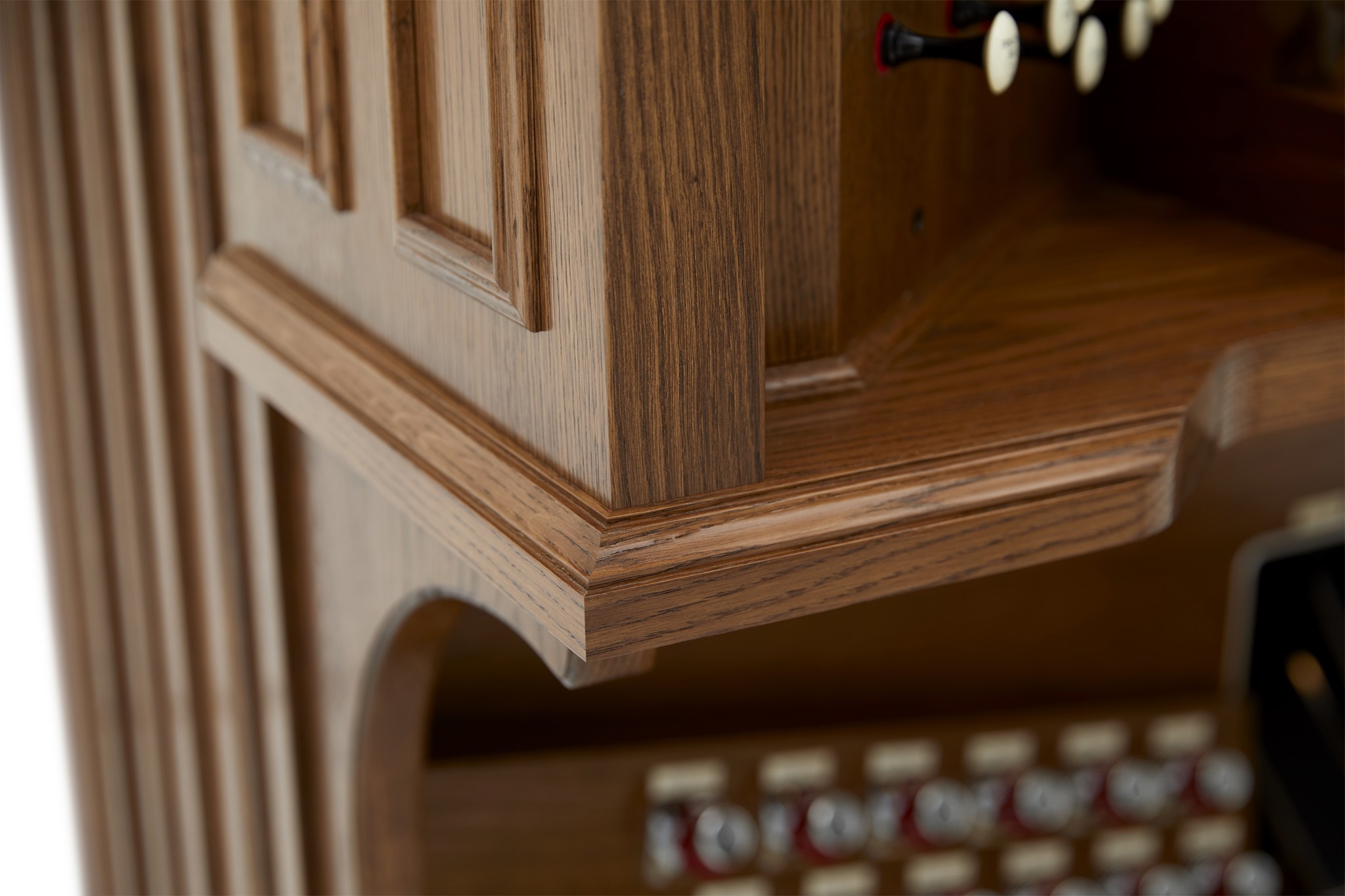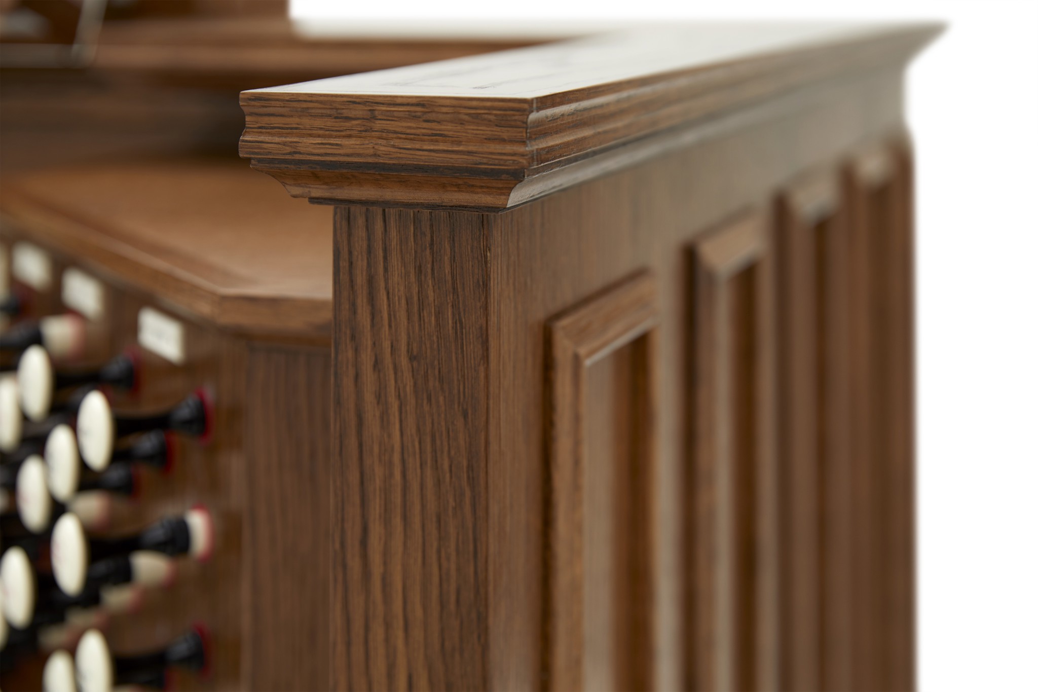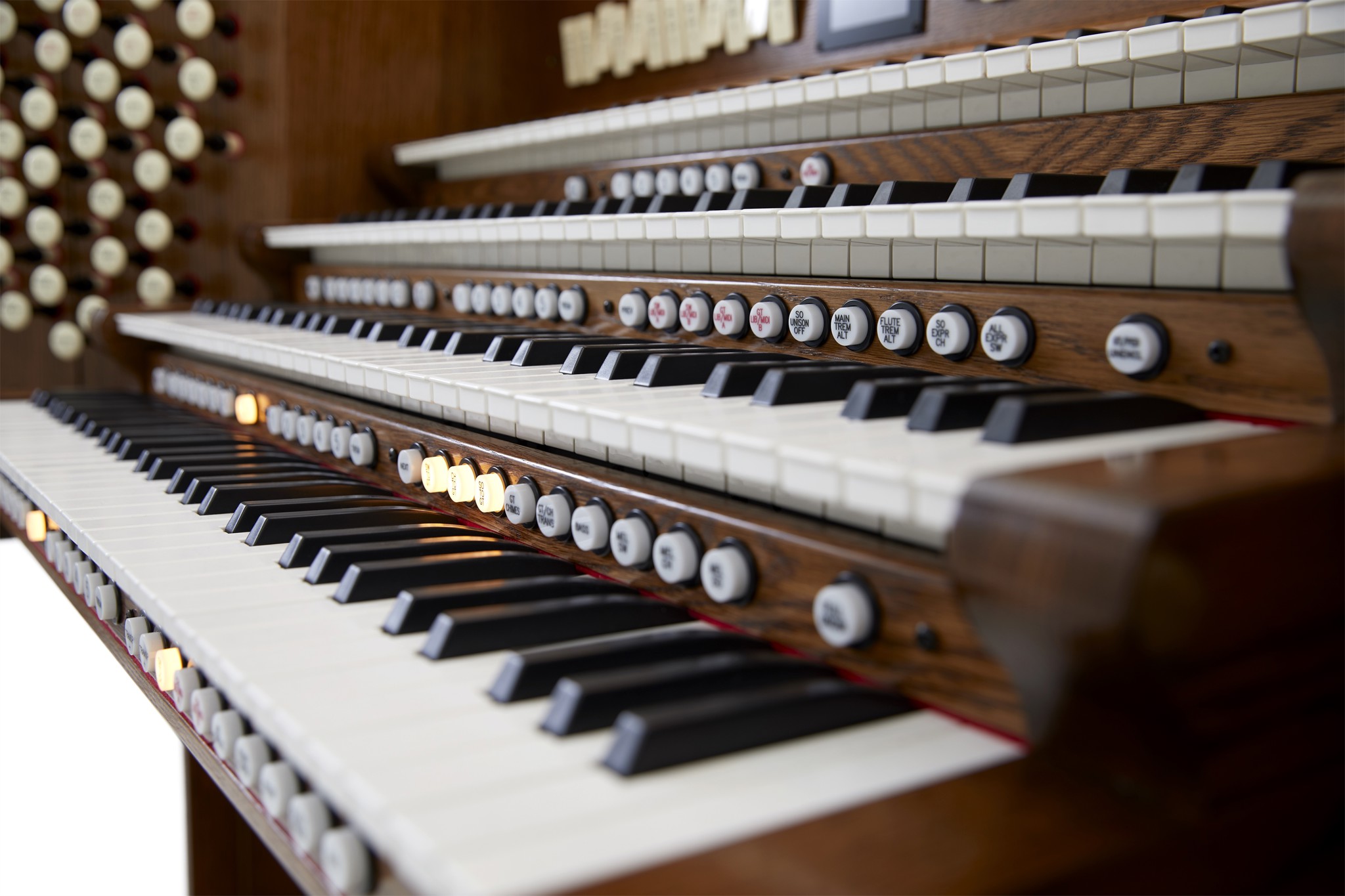 - Viermanualige Drawknob-Konsole (beleuchtete oder mechanische Zugregister)