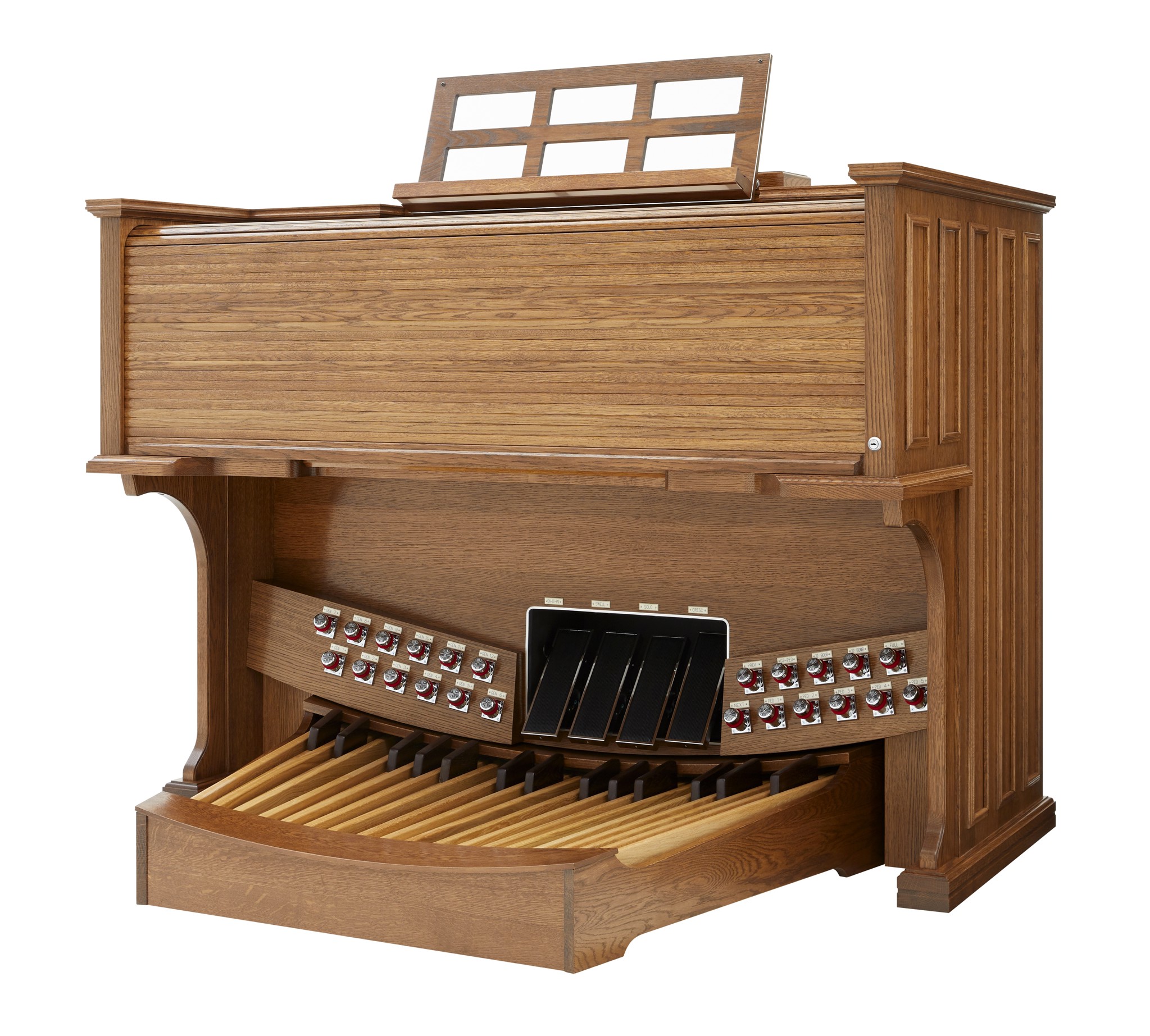 | Ausführung | Eiche hell/mittel dunkel (andere Holzfarben optional), Notenpult und Orgelbank verstellbar |